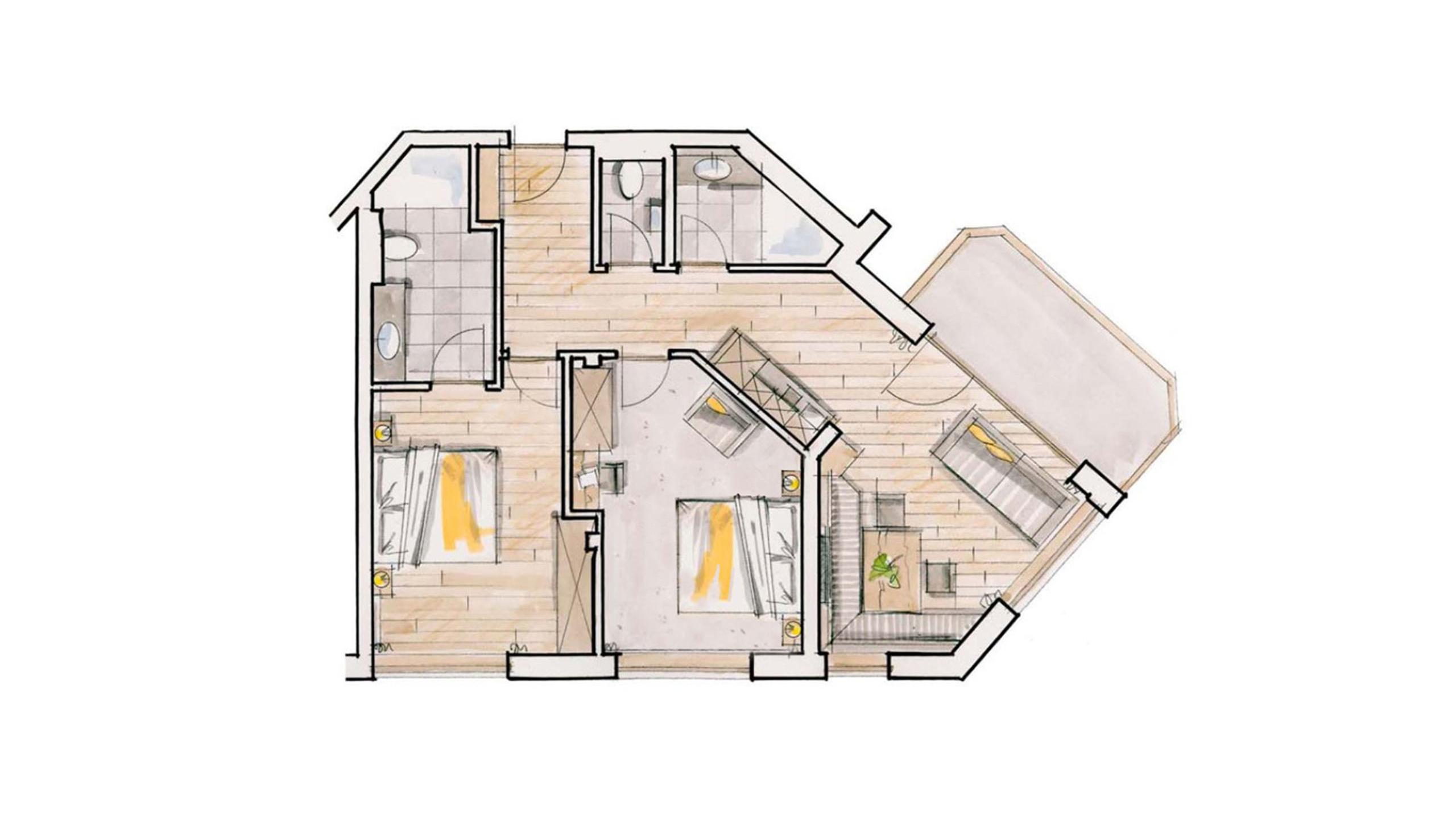 Für Familien, die sich gerne ausbreiten. Für Freunde, die zusammen Urlaub machen. Für Großeltern mit Enkeln. Für alle, die richtig viel Platz brauchen. Die Chalet Suite hat zwei Schlafzimmer und zwei Bäder. 71 m² zum Leben. Jeder hat sein eigenes Reich. Gemeinsam habt ihr Küche, Essbereich und Wohnraum. Und die Gemütlichkeit.
