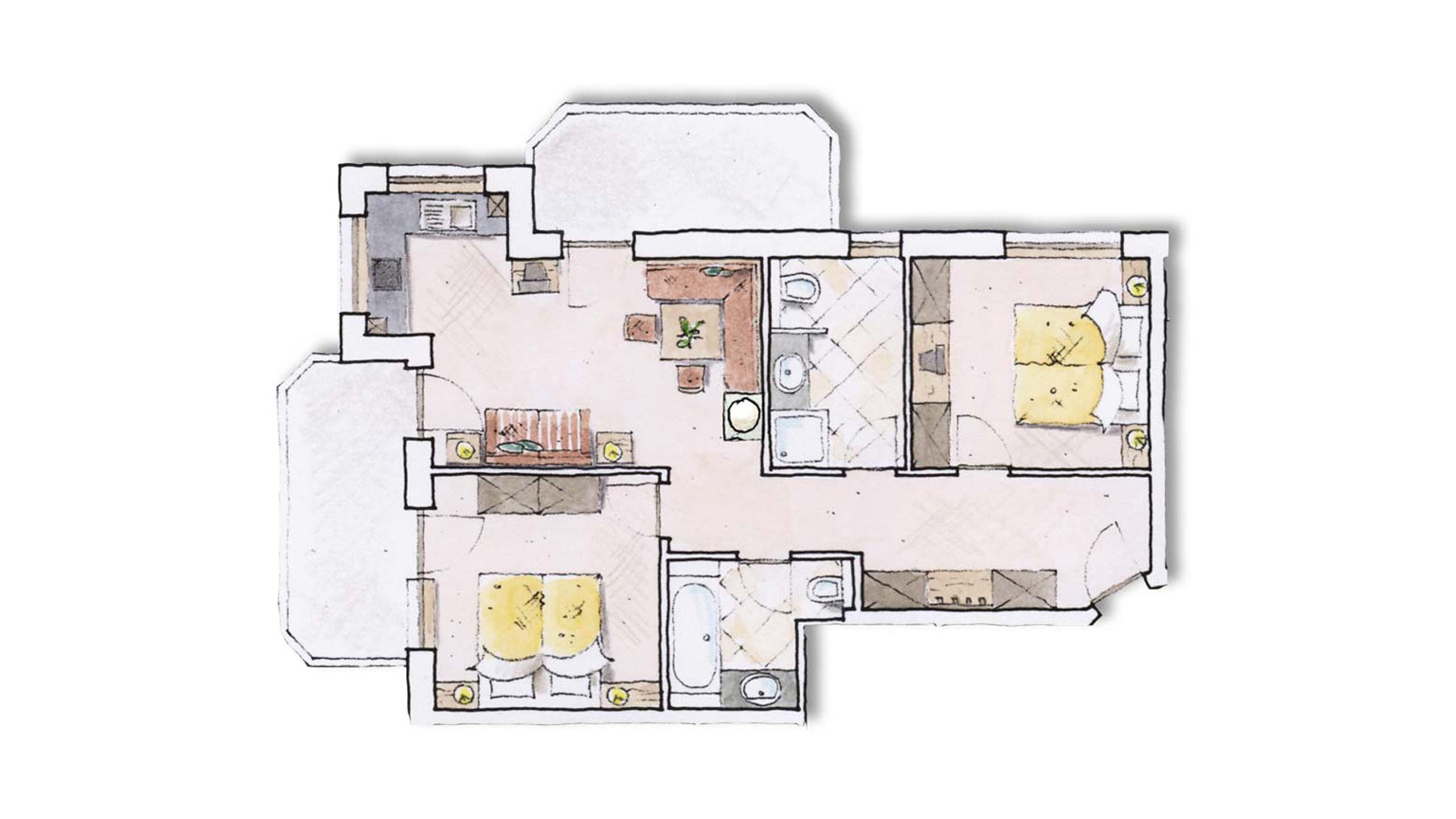 Für zwei Paare, die zusammen Urlaub machen. Für Großeltern mit Enkeln. Für Freunde, die gemeinsam in die Berge wollen. Für alle, die richtig viel Platz brauchen. Das Apartment Enzian bietet 90 m² zum Wohnen. Hier findet jeder sein Rückzugsreich.