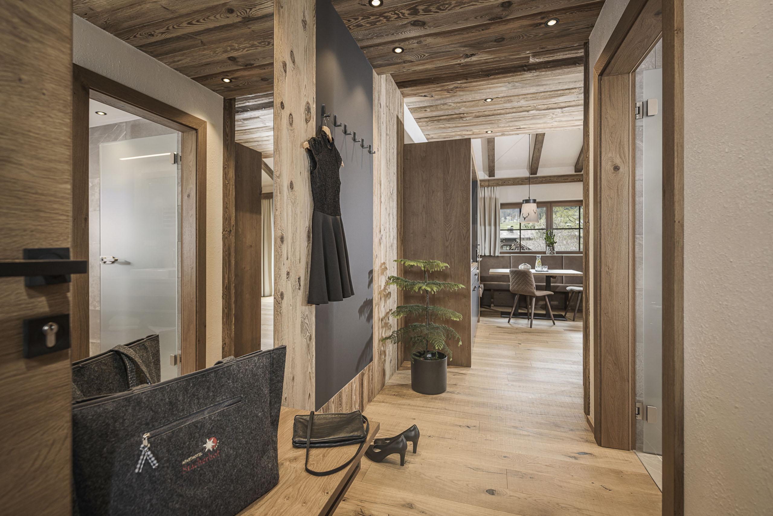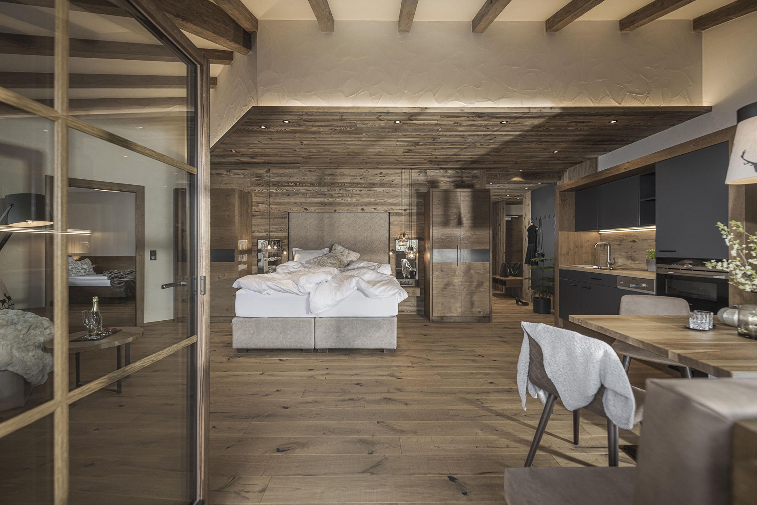 Für Paare mit Kind und der beste Ausblick im Haus. Für zauberhafte Urlaubstage und kurze Wege zur Sauna. Für alle, die am liebsten ganz oben wohnen. 62 m² mit zwei Schlafzimmern, Balkon und kompletter Küche. Ihr habt gemütlich-kuschelig Platz für drei. Und Traumpanorama inklusive.