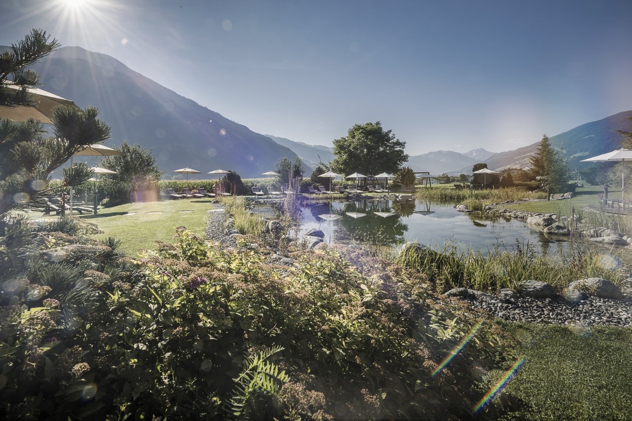 Im Sommer sind wir ein Hotel mit Schwimmteich in Tirol. Und mit Sauna.